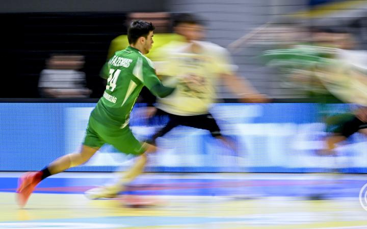 A várakozásoknak és az erőviszonyoknak megfelelően jól kezdtek a vendégek, a 11. percben már 9-4-re vezettek. A folytatásban jöttek a cserék - a junior világbajnoki ezüstérmes Pergel Andrej például góllal mutatkozott be -, és bár a különbség nem nőtt tovább, de nem is csökkent. A hazaiak piros lap miatt elveszítették egyik beállójukat, Matús Moravcíkot.