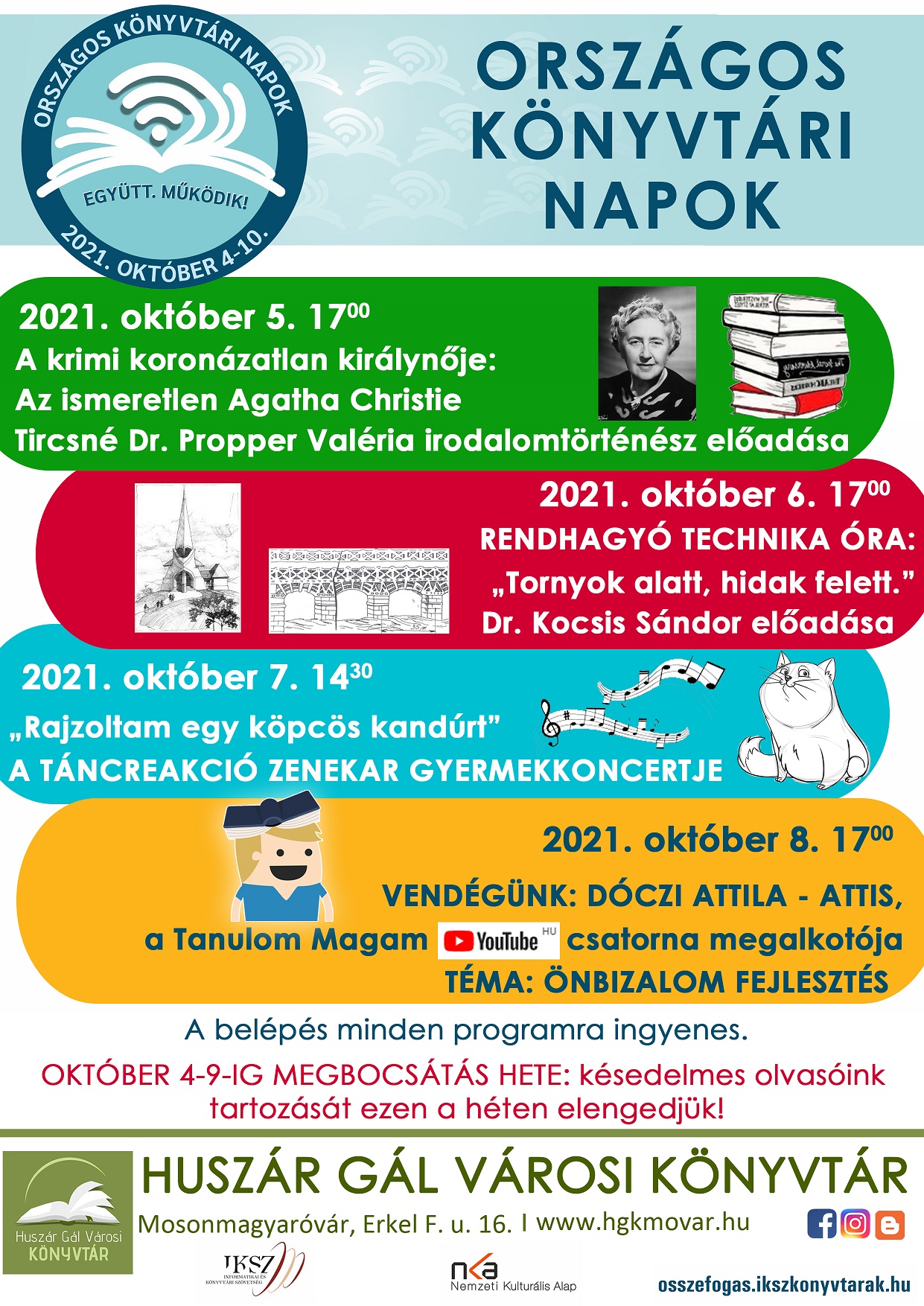 Idén is csatlakozik a Huszár Gál Városi Könyvtár az Országos Könyvtári Napok programsorozathoz. Október 4-től különböző programokkal, előadásokkal várjuk a látogatókat.
