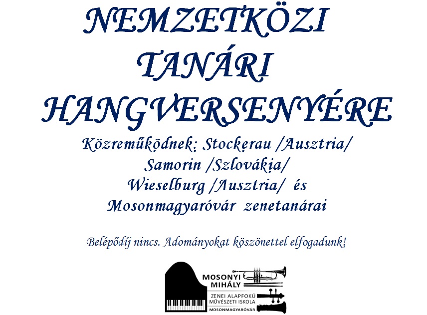 Nemzetközi tanári hangverseny a Mosonyi Mihály Zenei Alapfokú Művészeti Iskola közreműködésével.