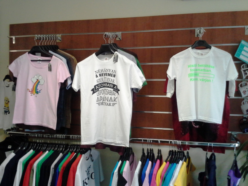 Cégünk textil feliratozást, egyedi pólók tervezést, fényképes ajándéktárgyakat, cégeknek csapat- és céges póló tervezést és legyártását vállalja.