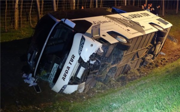 Felborult egy autóbusz az M5-ös autópálya Röszke felé vezető oldalán vasárnap hajnalban, a buszon negyvenkilenc ember utazott, öten könnyebben megsérültek - közölte a katasztrófavédelem a honlapján.