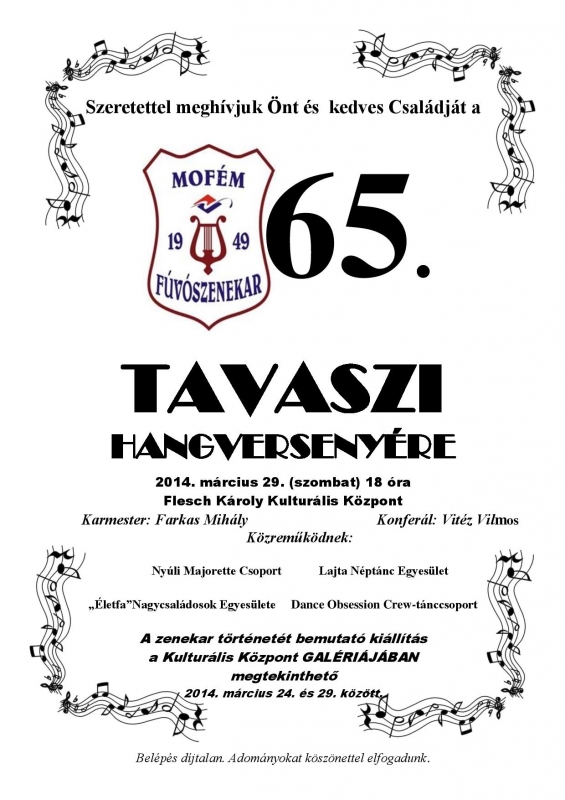 Hagyományos, immár 65. tavaszi hangversenyét tartja a mosonmagyaróvári Mofém Fúvószenekar március 29-én.