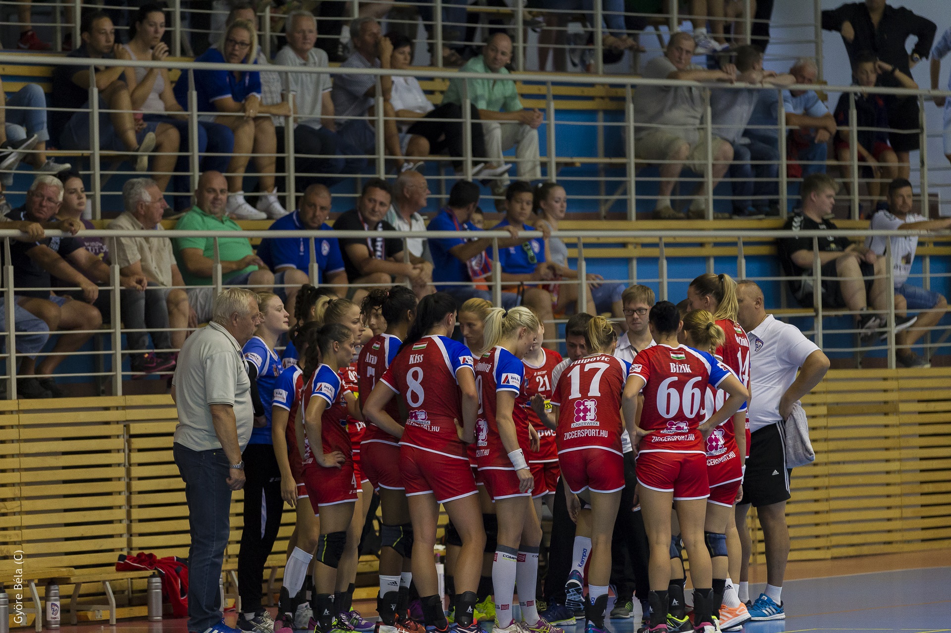 Kissé langyosan és zavarodottan kezdték az óváriak az összecsapást, így hibáikkal hamar három-négy gólos előnyhöz segítették az ellenfelüket. Elsősorban az eladott labdákkal, az agresszivitást minden szinten mellőző védelmükkel, és a fantáziátlan támadásaikkal. Többnyire csak a szélekről voltak sikeresek, mivel a siófokiak a kezdetektől nyitott védelemmel játszottak, ami ellen elsősorban a szélekről és a beállóból lehetett érvényesülni. Mivel utóbbit nem igazán sikerült megjátszani, ezért maradtak a szélek, és egy-két esetben, amikor valami hiba kapcsán megnyílt a védelmük, akkor a talpról indított lövéseikkel. Szélekről viszont konstans sikeresek voltak, köszönhetően Szepesi Ivettnek, Katona Flórának és Bizik Rékának. A huszadik perc környékén aztán a mosonmagyaróváriak is nyitott védelemre váltottak, amire a Siófokiak zavarodottsággal feleltek, így lényegében, az első játékrész utolsó tíz percében csak két gólt szereztek.