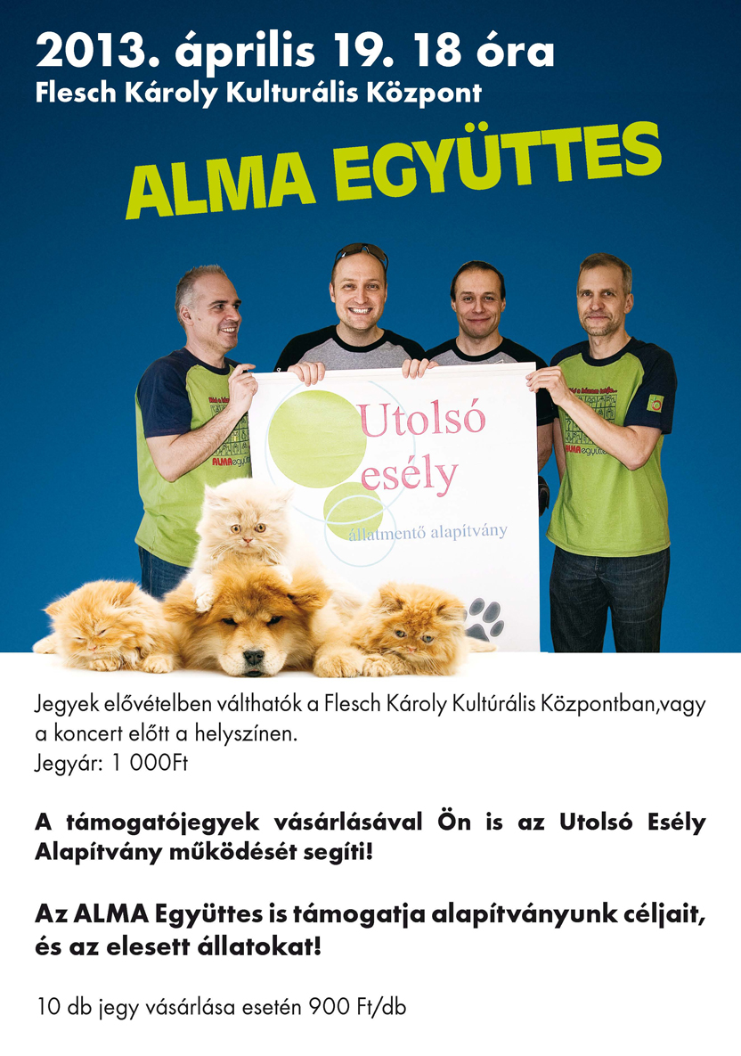 Az Alma együttes koncertezik a Flesch Károly Kulturális Központban április 19.-én.