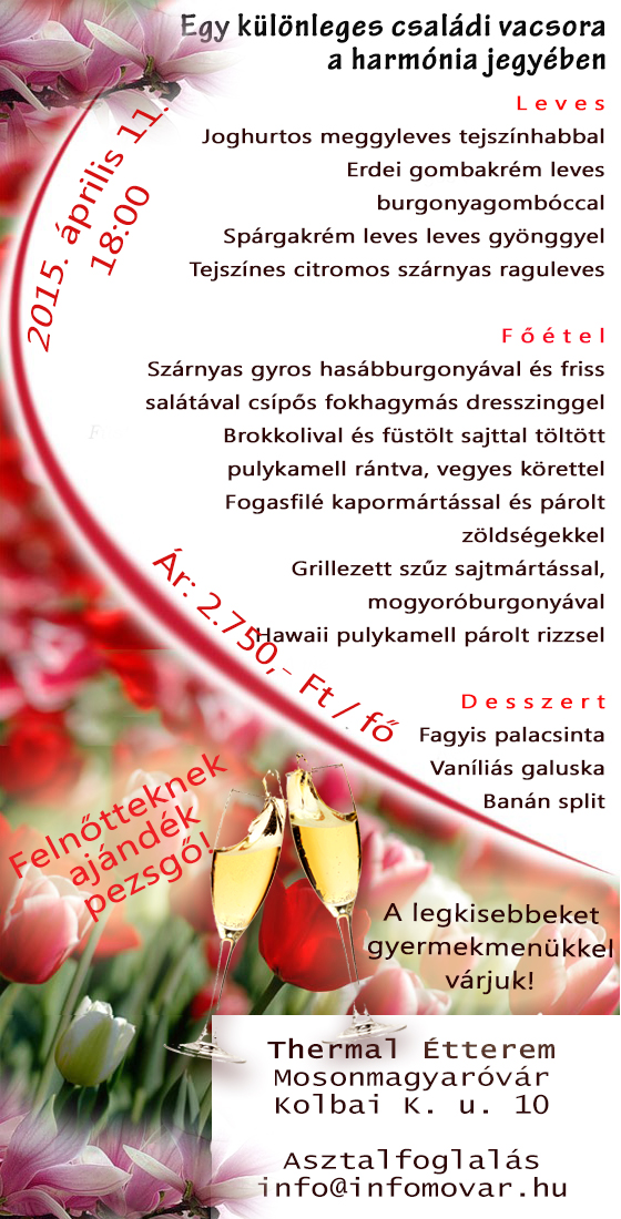 Helyszín: Thermal Étterem, Mosonmagyaróvár Kolbai u. 10.
