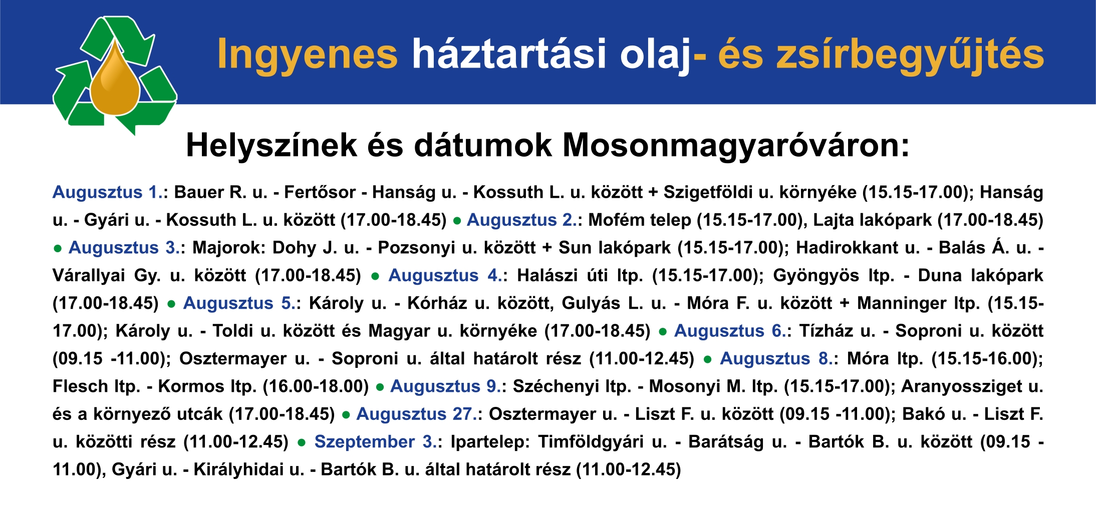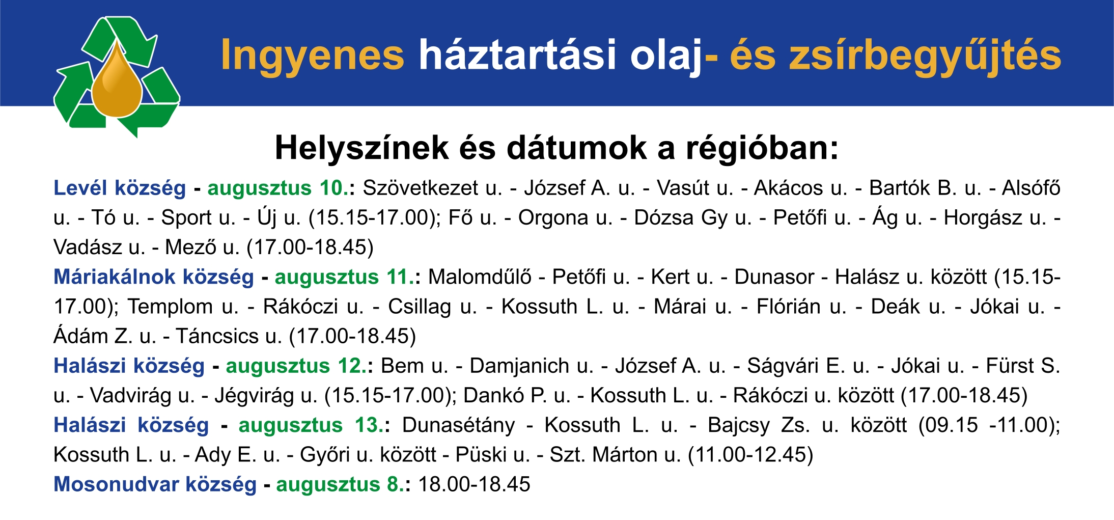 Augusztusban is folytatódik a használt olaj- és zsírbegyűjtés