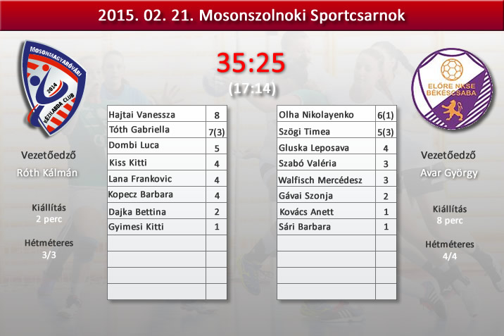 Alapszakasz 20. forduló I Mosonszolnok I MKC SE – Békéscsabai ENKSE 35:25 (17:14)