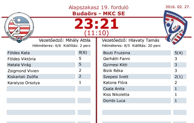 Alapszakasz 19. forduló I Budaörsi Városi Sportcsarnok I Budaörs - MKC SE