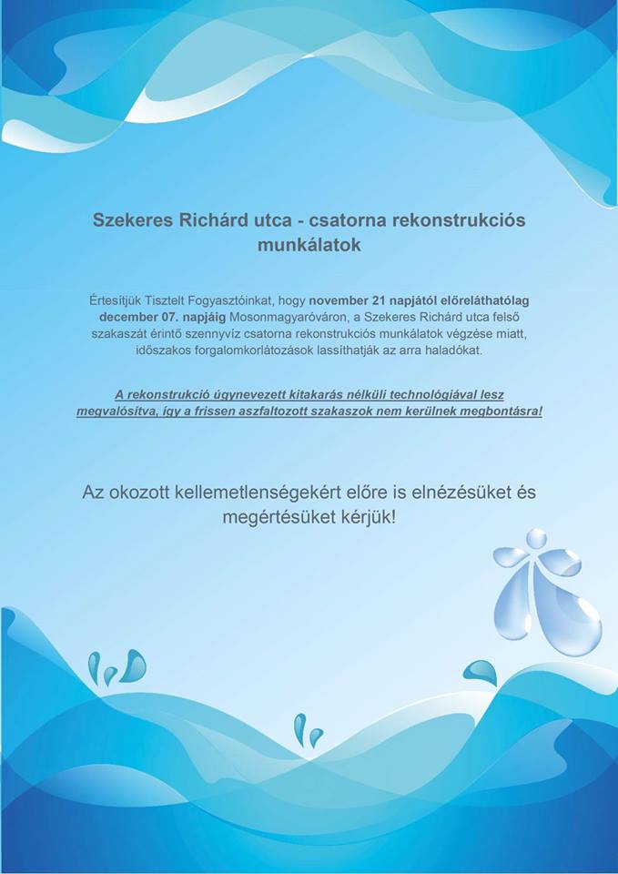 Csatorna-rekonstrukciós munkálatok a Szekeres Richárd utcában