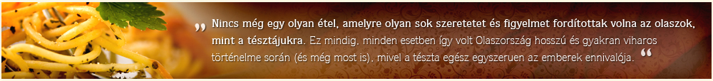 „Nincs még egy olyan étel, amelyre olyan sok szeretetet és figyelmet fordítottak volna az olaszok, mint a tésztájukra. Ez mindig, minden esetben így volt Olaszország hosszú és gyakran viharos történelme során (és még most is), mivel a tészta egész egyszerűen az emberek ennivalója.”