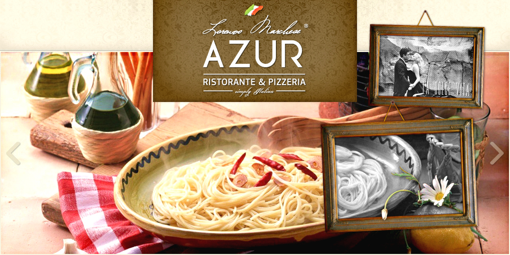 Az Azur - Simply Italian - Olasz Étterem és Pizzéria 2013 Március 15.- én nyitotta meg kapuit a vendégeik előtt. Több vezető séf és tulajdonos után jelenleg Lorenzo Marchese vezeti az éttermet és főzi a legfinomabb falatokat. Célja az, hogy mindenkinek sikerüljön olyan ételt főzni, amire mindig emlékezni fog, és ami által egy kicsit megízlelheti az olasz életérzést, a „la dolce vita”-t.