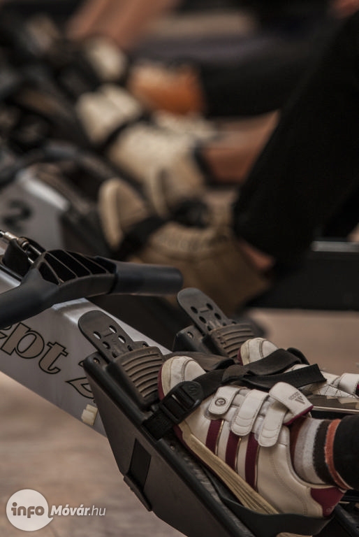 És már kezdődött is az evezés. A II. Mosonmagyaróvári Ergométeres bajnokság versenyzőire ráfért a bíztatás. 500 vagy 1000 méteren kellett bizonyítaniuk. Az ergométer egy szimulációs szerkezet, amit az evezősök használnak.