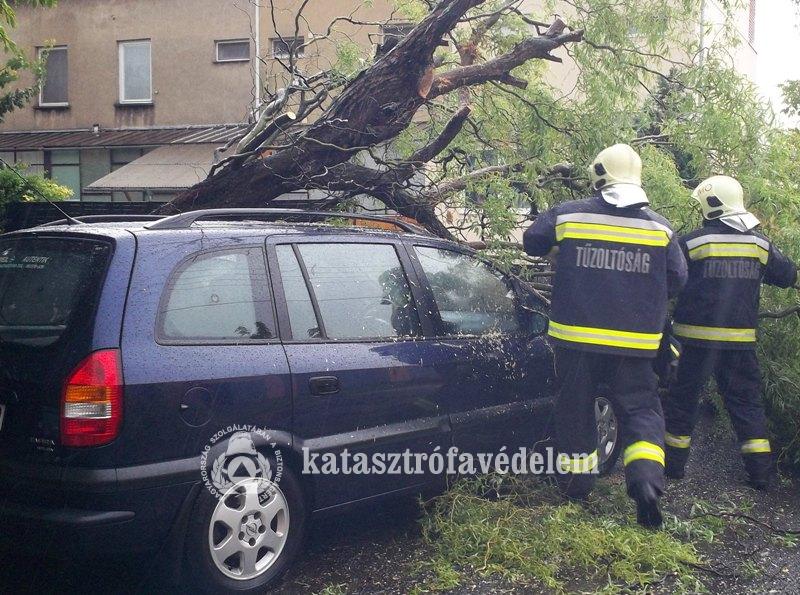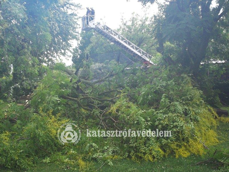 Egy Aranyossziget utcai lakóépületre a szomszédos elhagyatott telekről dőlt rá a fa, megbontva az épület előtető részét, a Kaszás Miklós utcában pedig egy személyautóra dőlt fát kellett eltávolítaniuk a helyi tűzoltóknak.