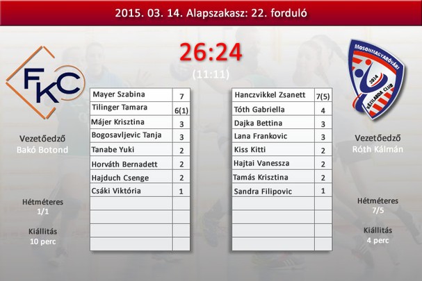 Alapszakasz 22. forduló I Köfém Sportcsarnok I Fehérvár KC – MKC SE 26:24 (11:11)