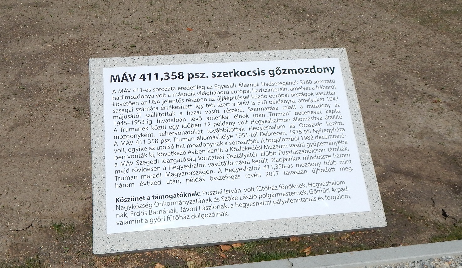 1979 óta nem vagyok vasutas. – kezdte az InfoMosonmagyaróvár számára adott nyilatkozatát a polgármester. - Ez a közösség azonban mind a mai napig olyan számomra, mint a családom. Bármikor számíthatok rájuk. Így elmondhatom, hogy ennek az összetartó erőnek is a jelképe a ma felavatott szobor mozdony. Sok utánajárás, engedélyeztetés és komoly munka van abban, hogy ez a Truman, ilyen állapotában itt állhat ma Hegyeshalomban. A kezdeményezés legfőbb koordinátora és tulajdonképpen a kitalálója is, Pusztai István. Az ő állhatatos munkája és elkötelezettsége nélkül nem jöhetett volna létre, hogy ma itt álljunk és ünnepeljük. Köszönjük neki az egész község nevében!