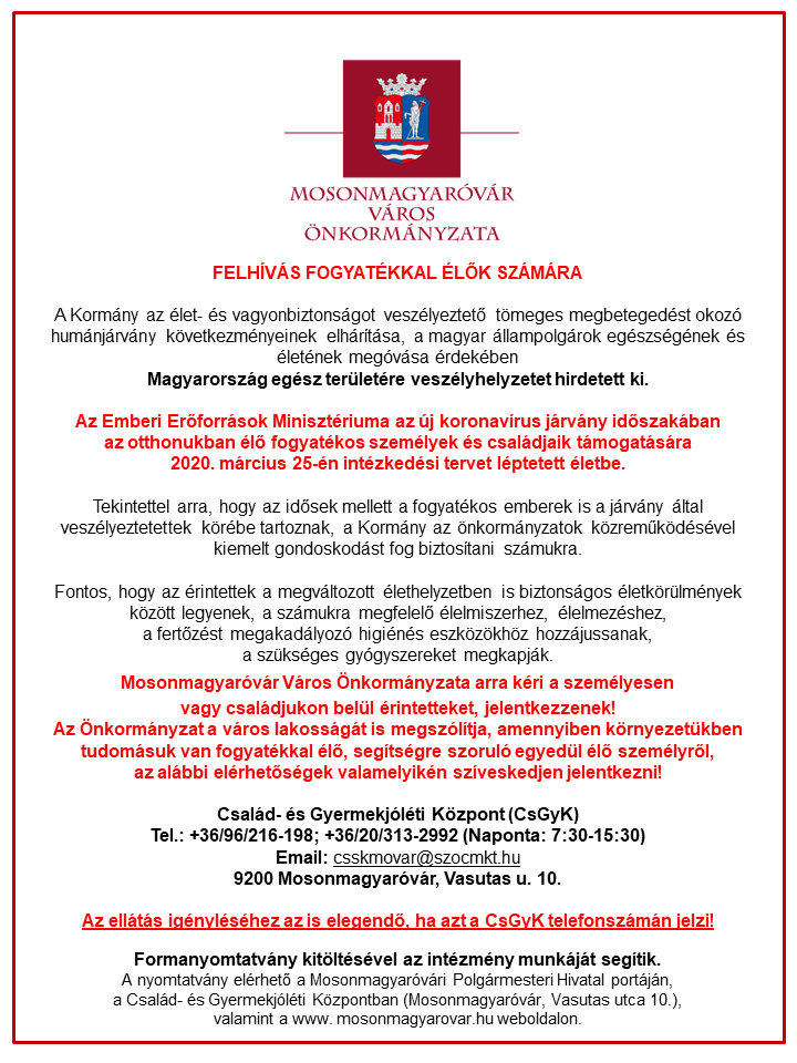Mosonmagyaróvár Város Önkormányzatának felhívása.
