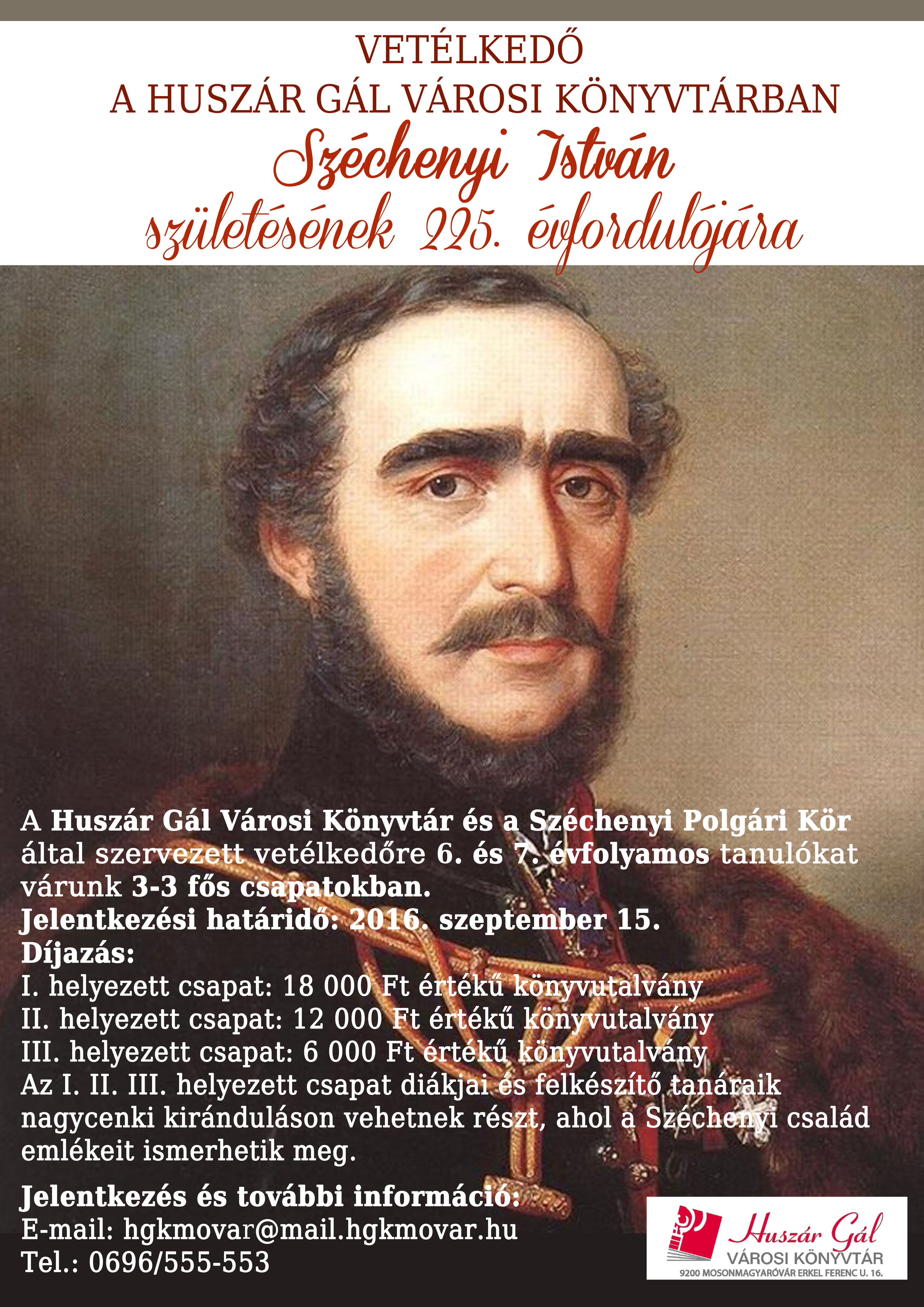 A Széchenyi Polgári Kör és a Huszár Gál Városi Könyvtár ennek tiszteletére vetélkedőt szervez 6. és 7. évfolyamos tanulók számára.