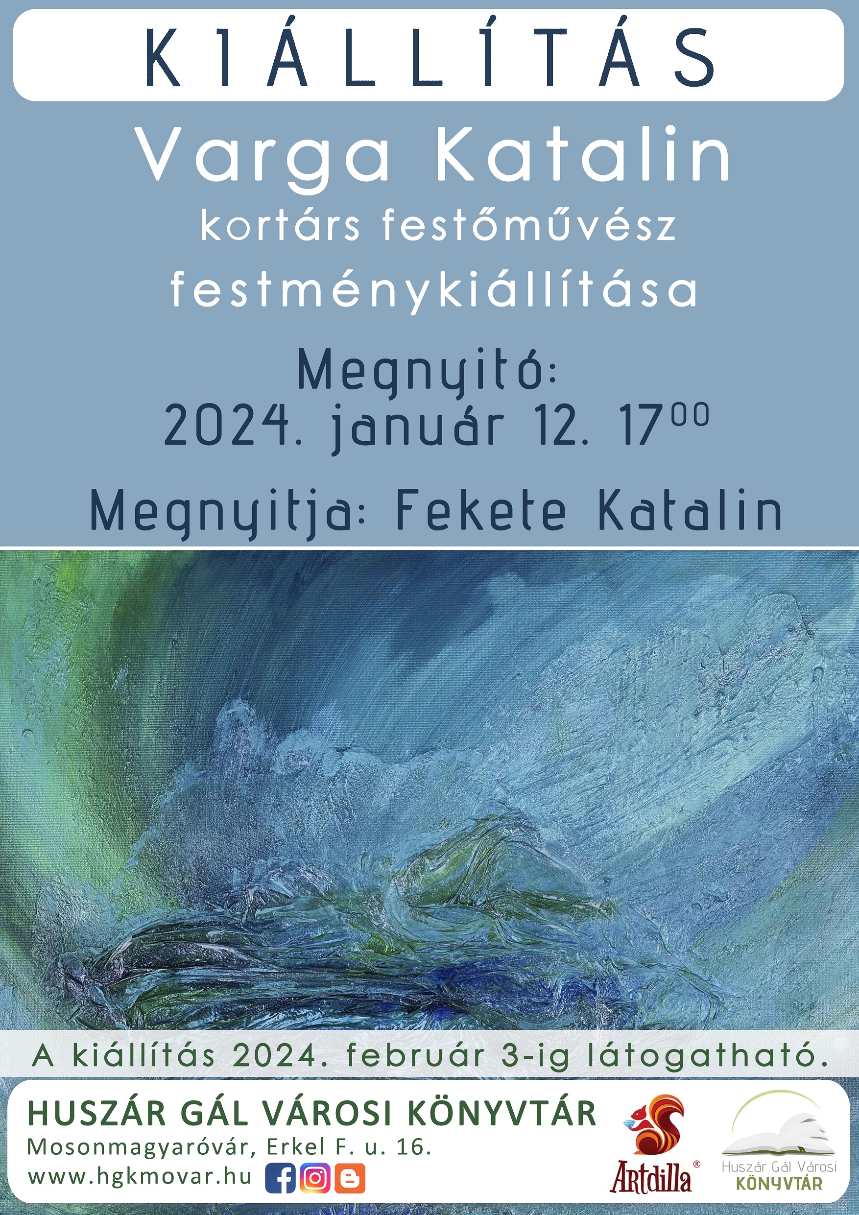 Varga Katalin kortárs festőművész festményeiből nyílik kiállítás a Huszár Gál Városi Könyvtár emeleti kiállítóterében 2024. január 12-én, pénteken 17 órától.