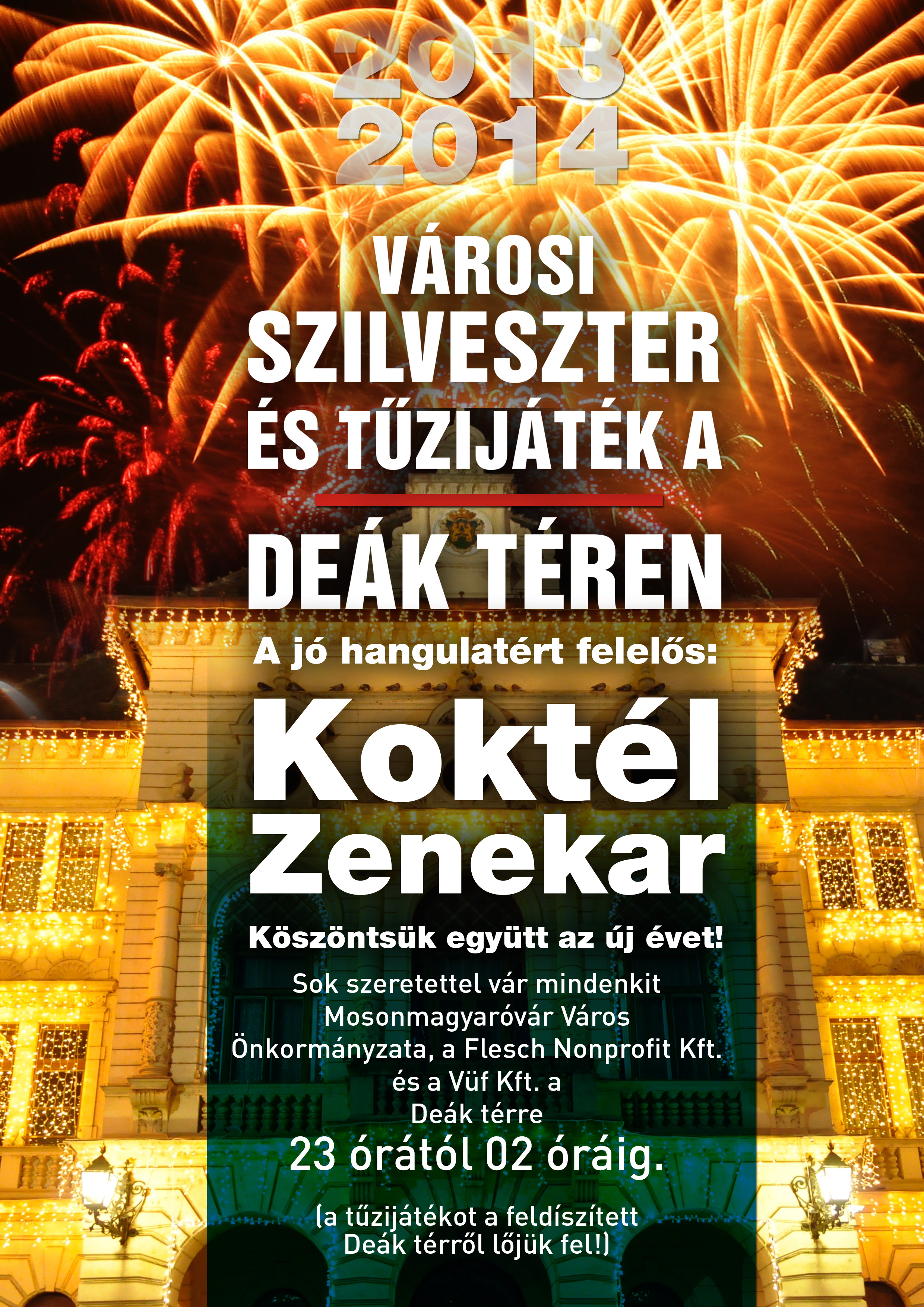 Mosonmagyaróvár Város Önkormányzata, a Városüzemeltető és Fenntartó Kft. és a Flesch Károly Nonprofit Kft. 2013-ban is megrendezi a szabadtéri Városi Szilvesztert a Deák téren.