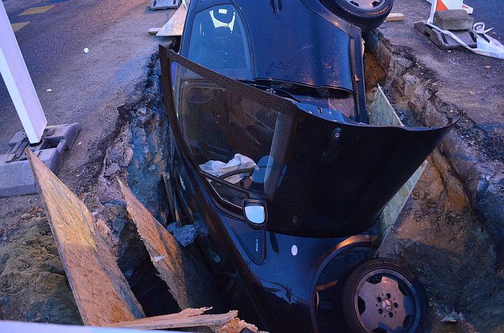 Anyagi káros közúti közlekedési baleset történt tegnap késő délután Győrben. Későn észlelte egy férfi az útfelbontást és munkagödörbe hajtott autójával.