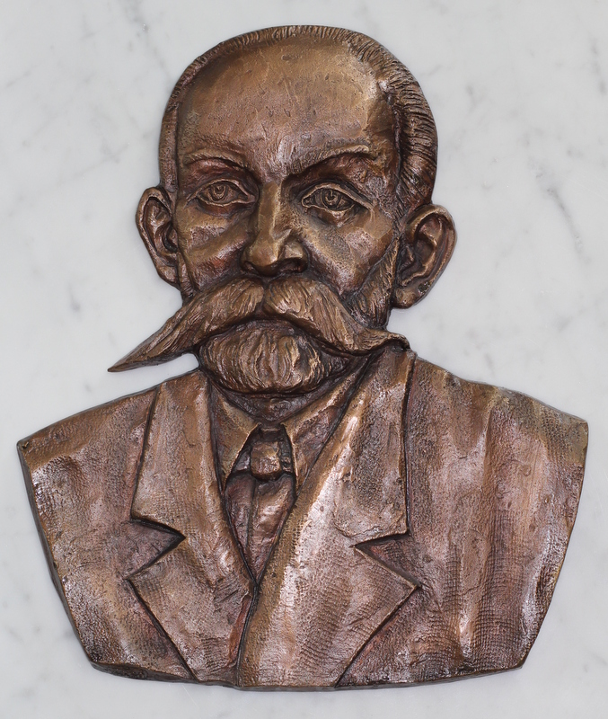 Az emléktábla Lebó Ferenc, győri szobrászművész alkotása, 72x102 cm-es álló méretű, fehér carrarai márványból, bronz arcdomborművel készült.
