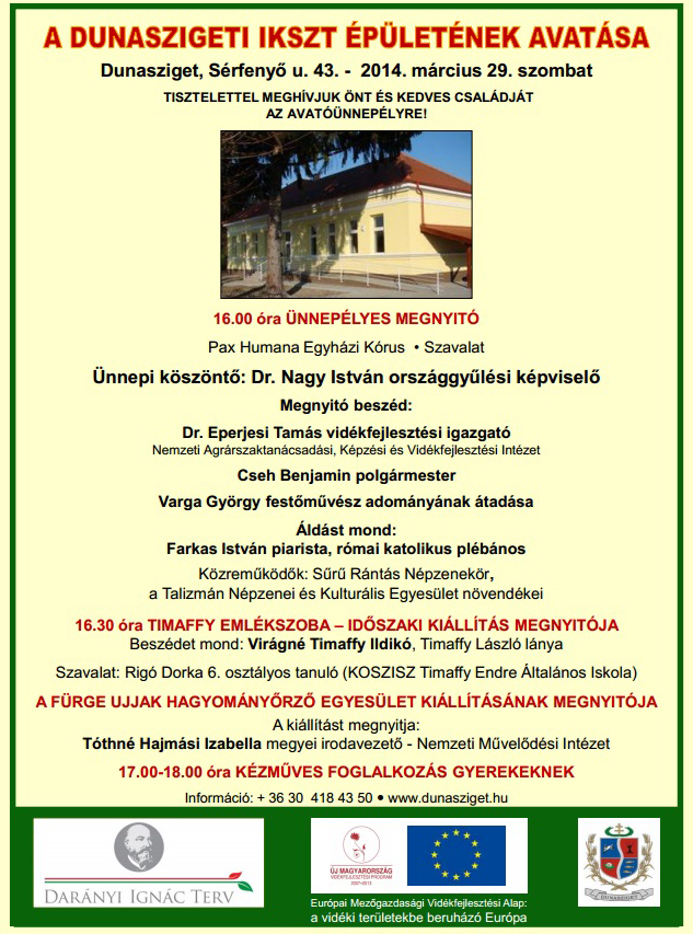 A Dunaszigeti IKSZT épületének avatása március 29.-én.