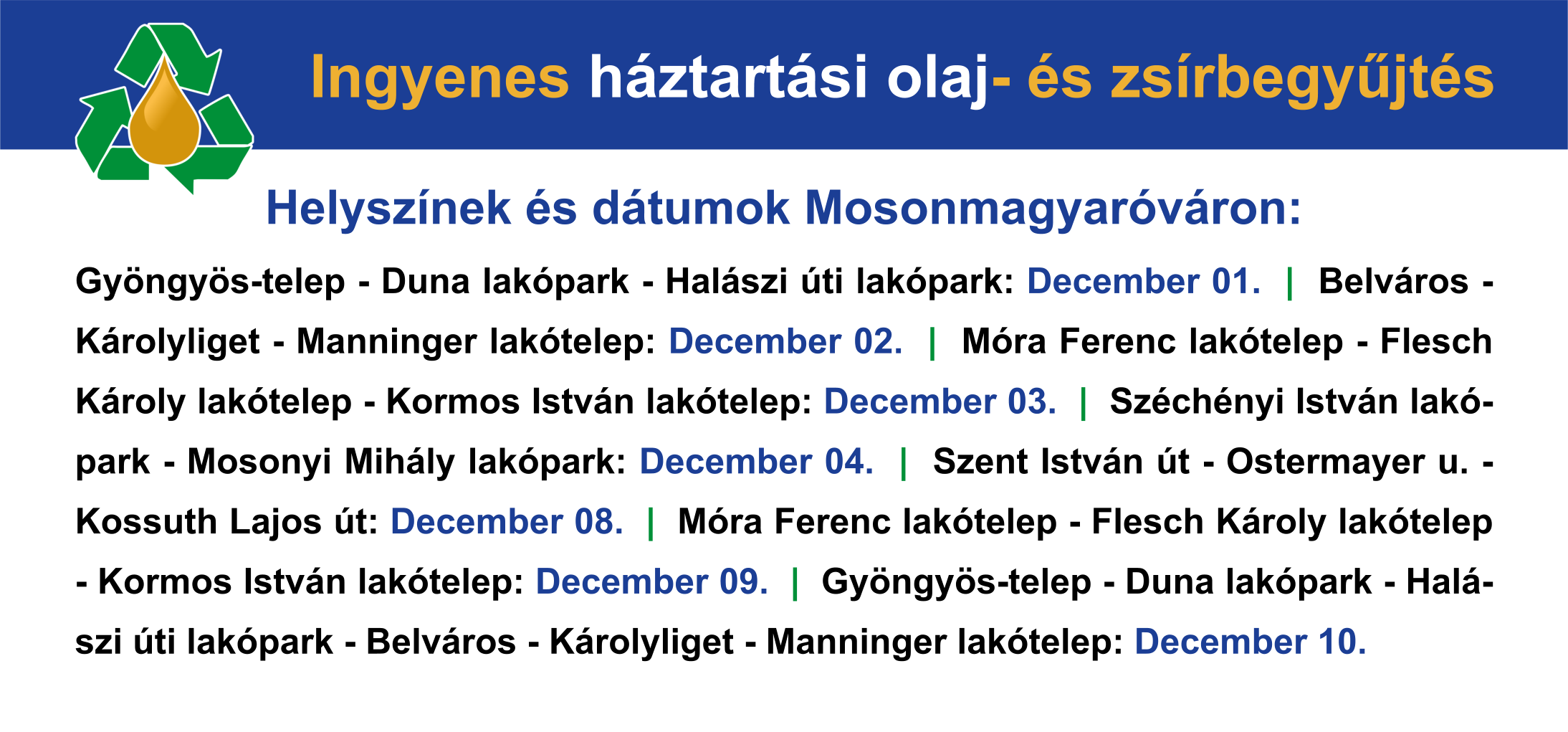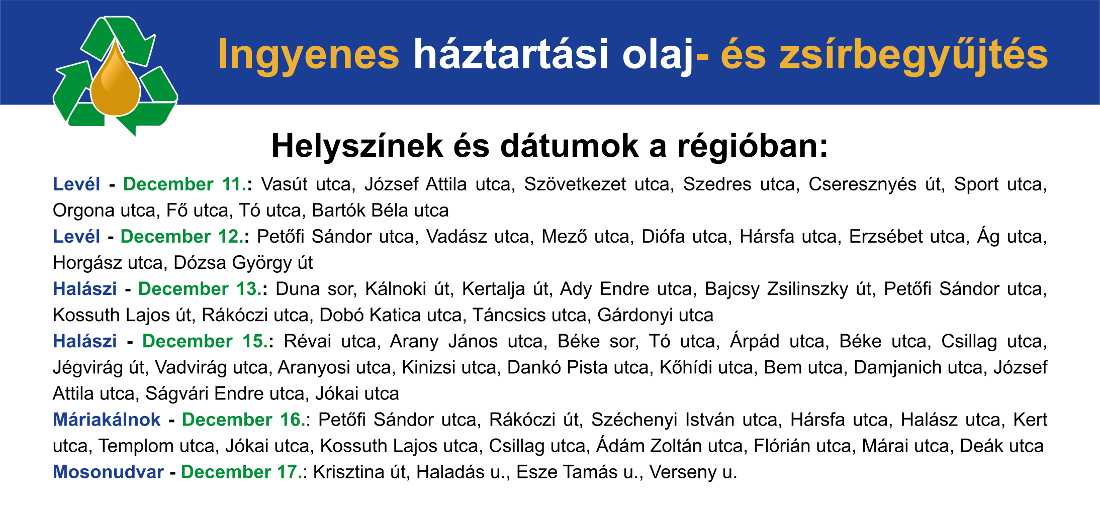 Ingyenes háztartási olaj- és zsírbegyűjtés