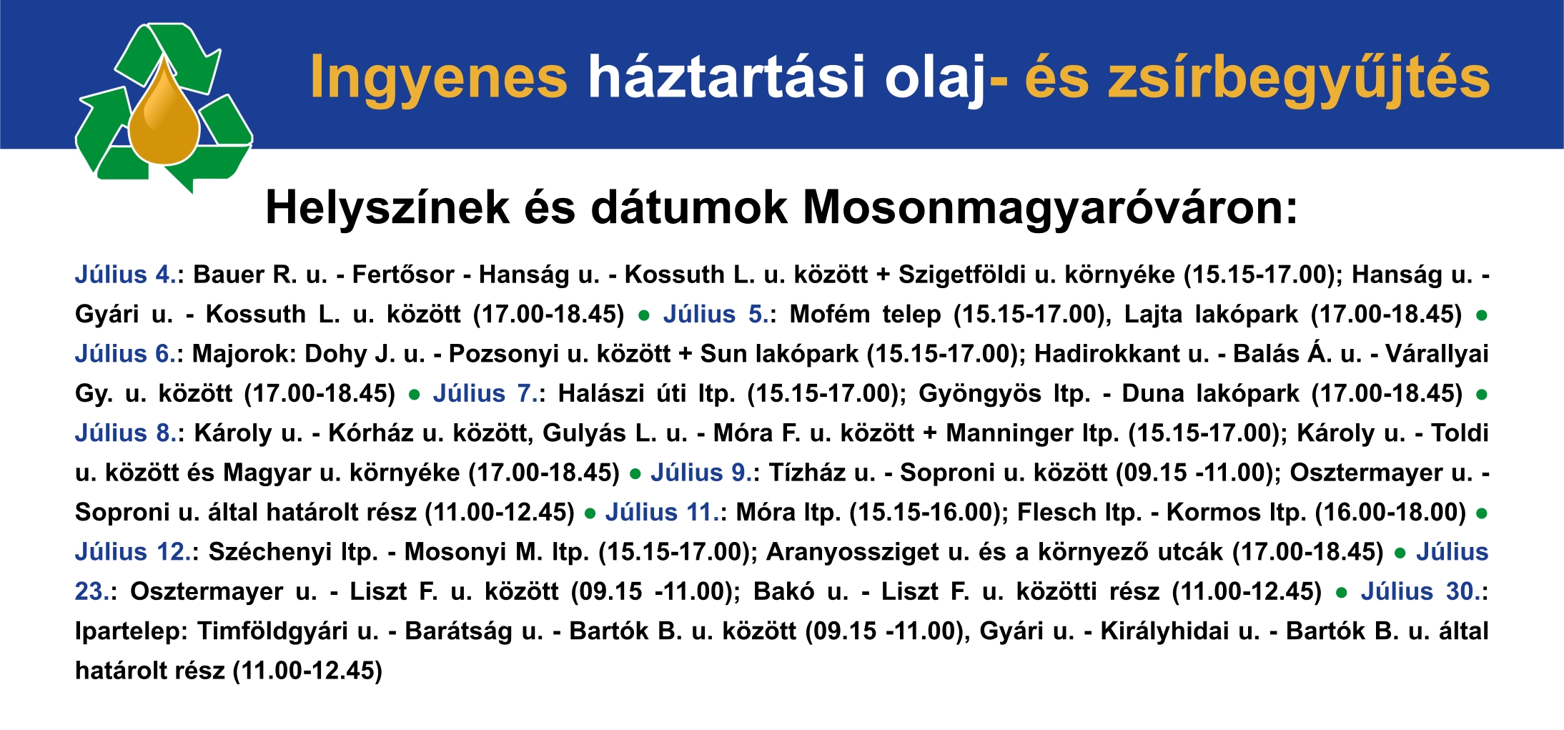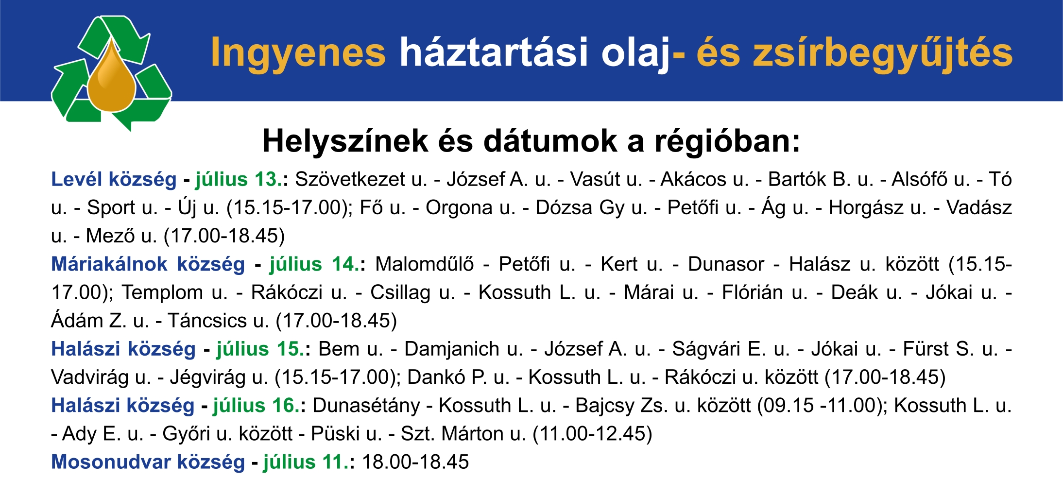 Júliusban is folytatódik az AQUA Szolgáltató Kft. használt olajbegyűjtési akciója.
