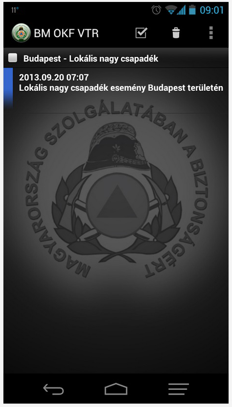 Okostelefonokra és táblagépekre készített, országosan bárki által ingyenesen elérhető alkalmazást a BM Országos Katasztrófavédelmi Főigazgatóság.
