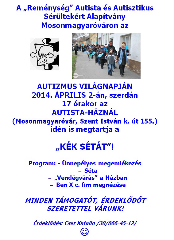 A „Reménység” Autista és Autisztikus Sérültekért Alapítvány idén is megszervezi az Autizmus Világnapja alkalmából a Kék sétát.