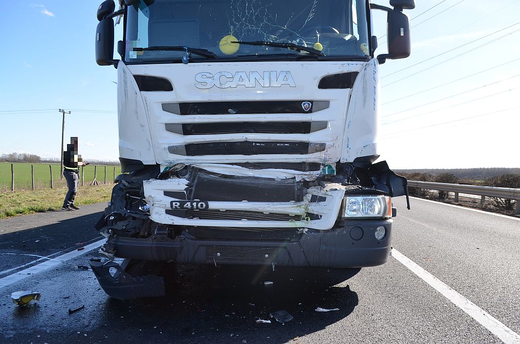 Egy Scania típusú nyergesvontatóból és a hozzá kapcsolt félpótkocsiból álló járműszerelvény sofőrje a haladása során nem tartotta meg a megfelelő követési távolságot az előtte haladó kamiontól. Így amikor a vétlen gépjármű forgalmi okból fékezni kényszerült, a Scania hátulról nekiütközött.
