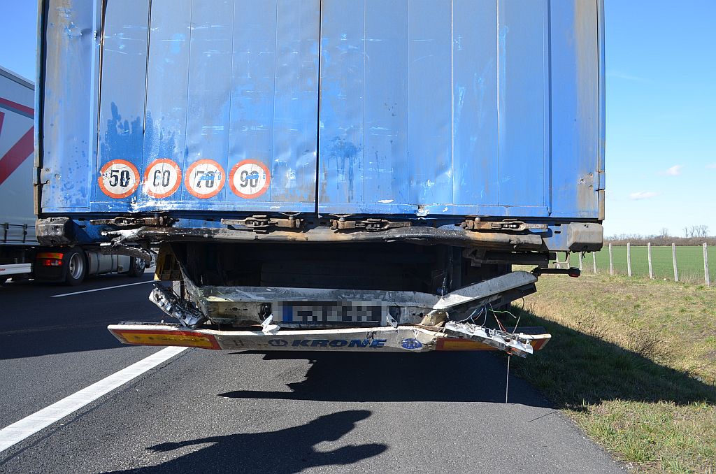 Anyagi kárral járó közúti közlekedési baleset történt 2020. március 2-án (hétfőn) 12 órakor az M1-es autópálya Hegyeshalom felé vezető oldalán, a Lébény és Mosonmagyaróvár közötti útszakaszon.
