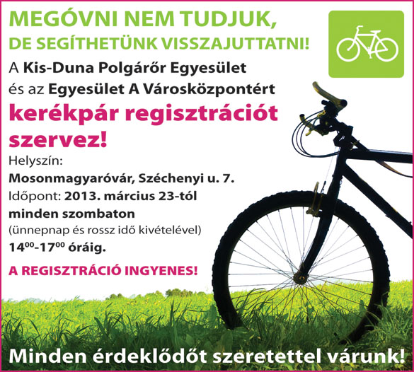 KERÉKPÁR REGISZTRÁCIÓT hirdet!