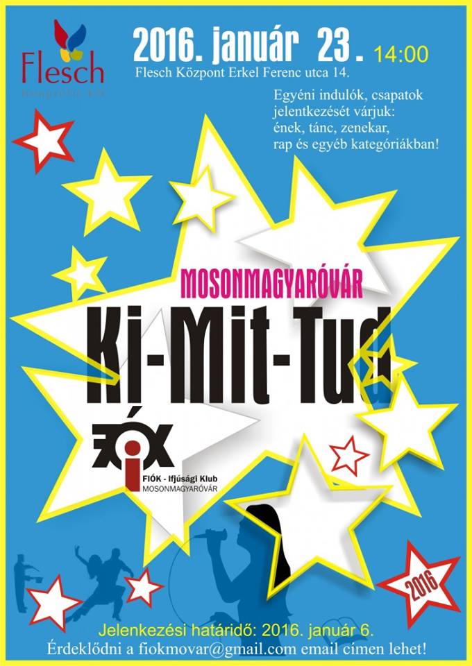 Szeretettel vár minden kedves érdeklődőt a Flesch Károly Kulturális Központ és a FIÓK Ifjúsági Klub a 2016-os Ki Mit Tudon!