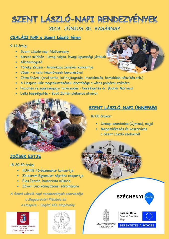 A Szent László-napi megemlékezésre és koszorúzásra 2019. június 30-án, vasárnap 17 órai kezdettel kerül sor a magyaróvári Szent László szobornál.