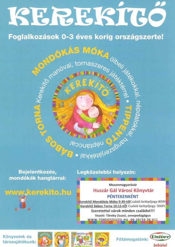 Ettől a héttől kezdve, a mosonmagyaróvári Huszár Gál Városi könyvtárban tartják a foglalkozásokat. A Kerekítő Mondókás Móka délelőtt fél 10-tól várja a piciket, a Kerekítő Bábos Tornára pedig 10:15-től kerül sor.