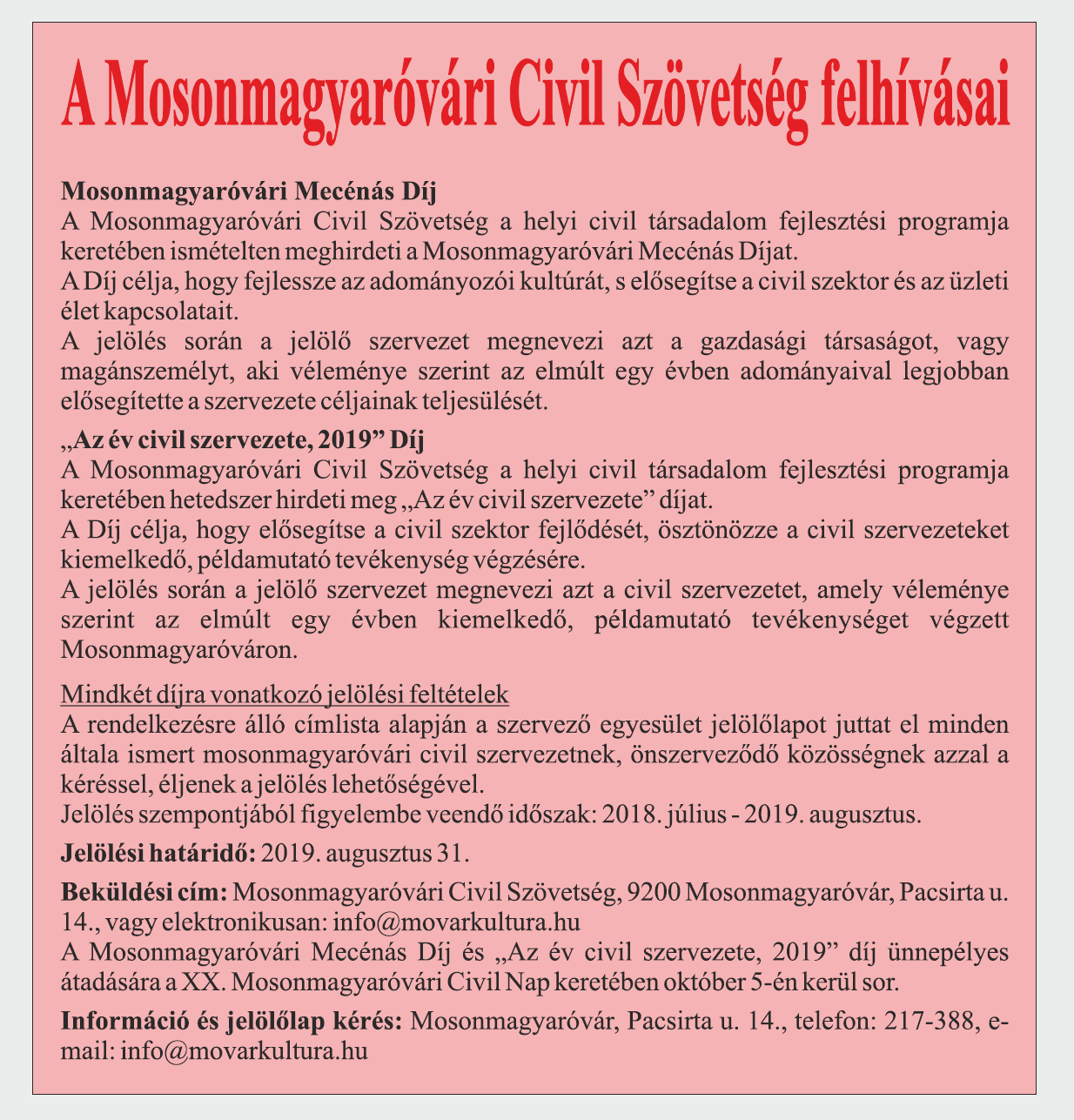 A Mosonmagyaróvári Civil Szövetség felhívása