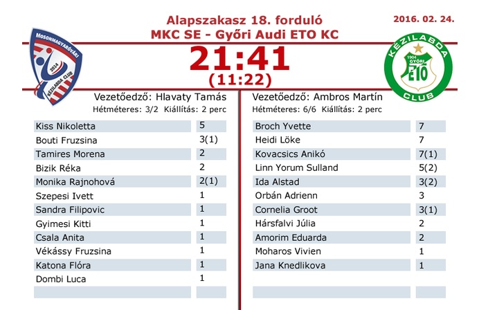 „Úgy láttam, hogy a második félidő során összeszedettebben védekeztünk, miközben a támadójátékok során több formációt is eredményesen alkalmaztunk. A részben kikényszerített technikai hibákból adódóan viszont továbbra is tudták tartották az első félidő során szerzett előnyüket a győriek” – nyilatkozta a második félidőről Csapó Kyra.
