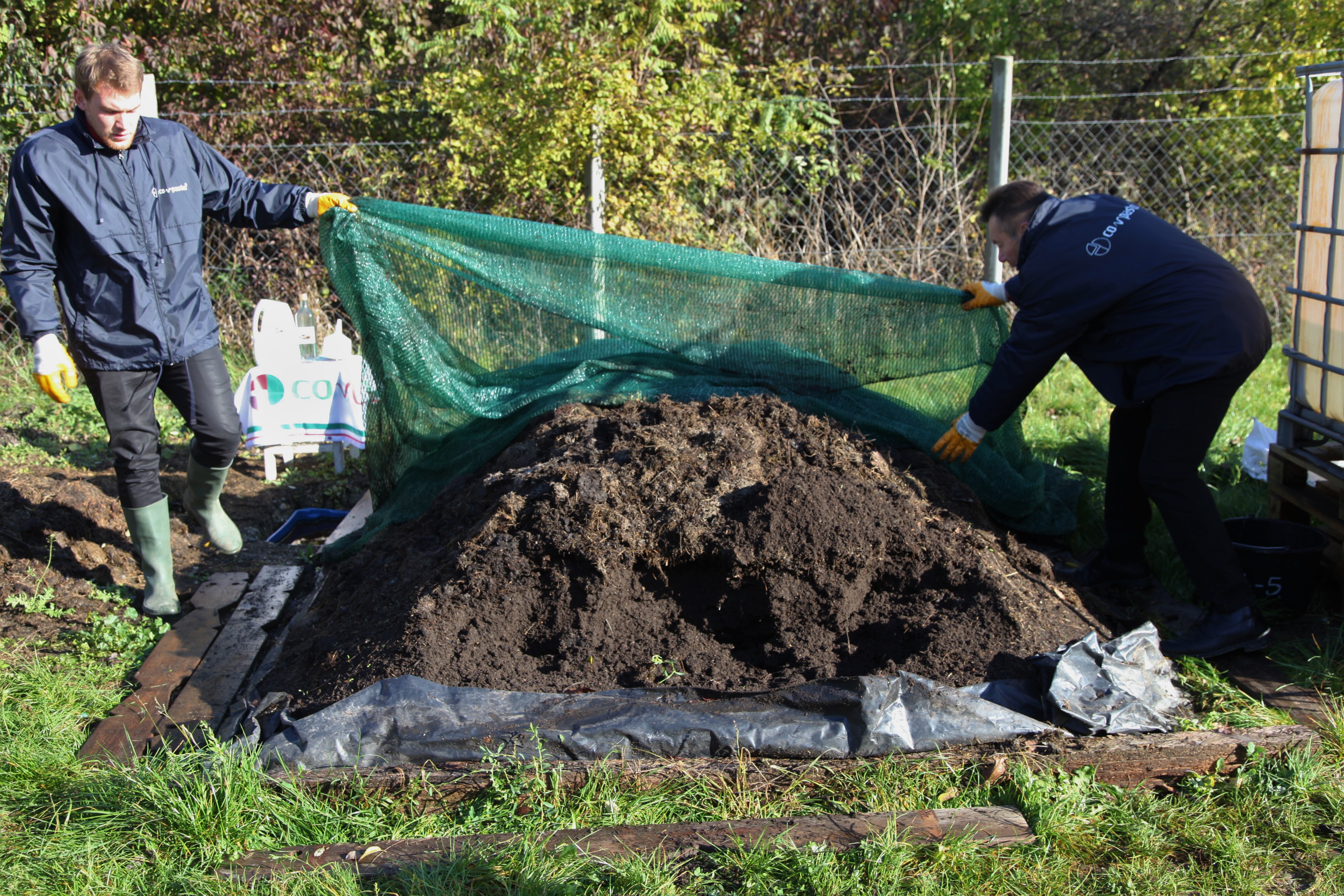 A szakemberek a frissen kinyert komposzt felhasználásával három virágtartóba ültettek el növényeket, valamint egy facsemetét is elültettek a Nolato telephelyén. A komposztáló prizma aljáról kinyert tápanyagokban különösen gazdag, így a növények tápanyagpótlására kiváló komposztlét palackozták, majd a komposzthalmot friss szerves hulladékkal pótolták vissza és újra etakarták azt. Az egyszer létrehozott komposztprizma ugyanis a kész komposzt kinyerésével és a