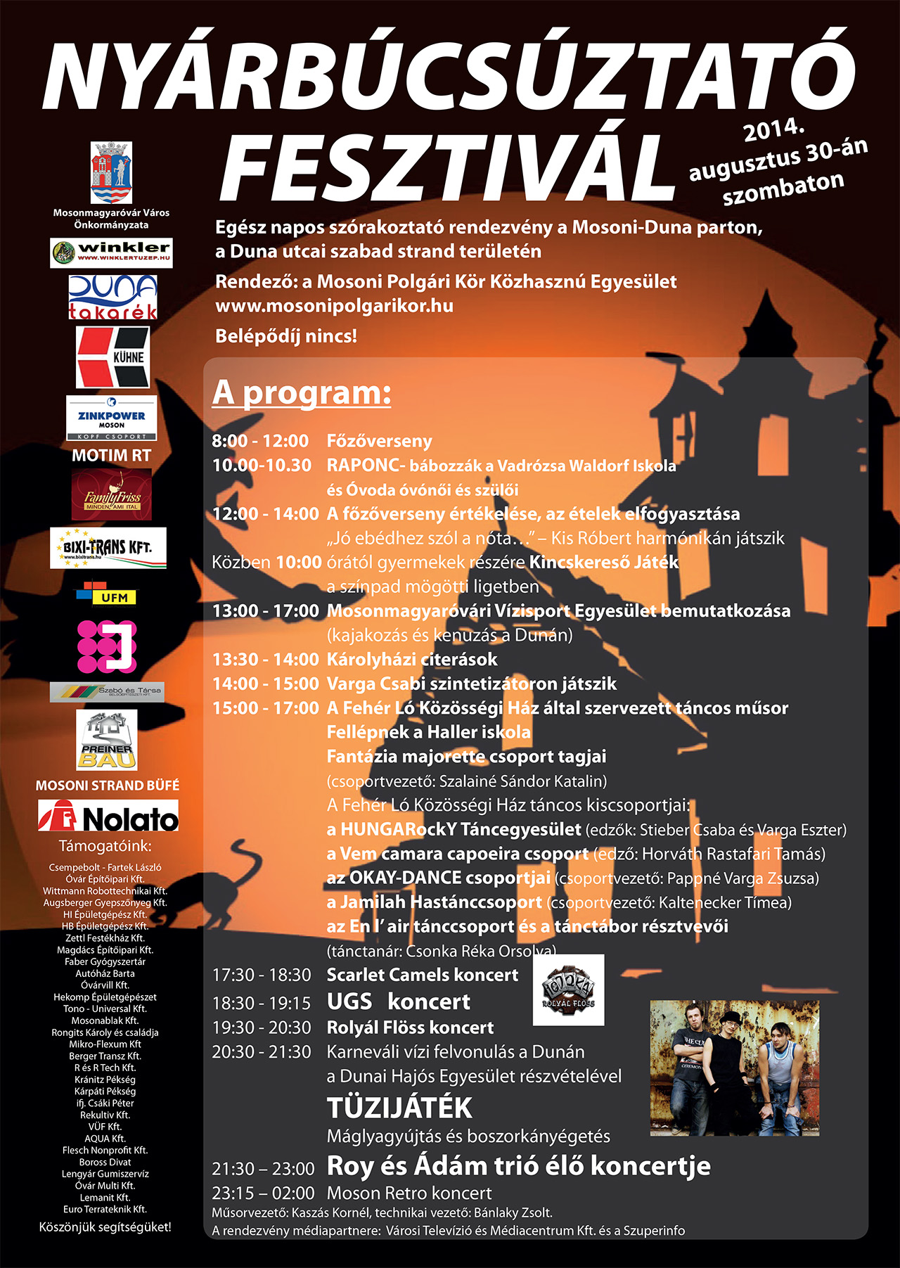Idén is megszervezésre kerül a Mosoni-Duna parton a Nyárbúcsúztató fesztivál.