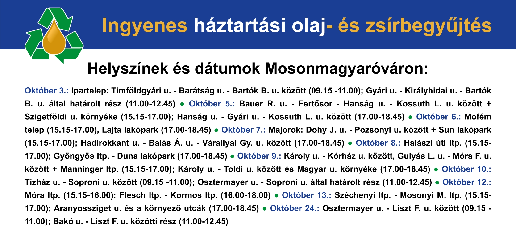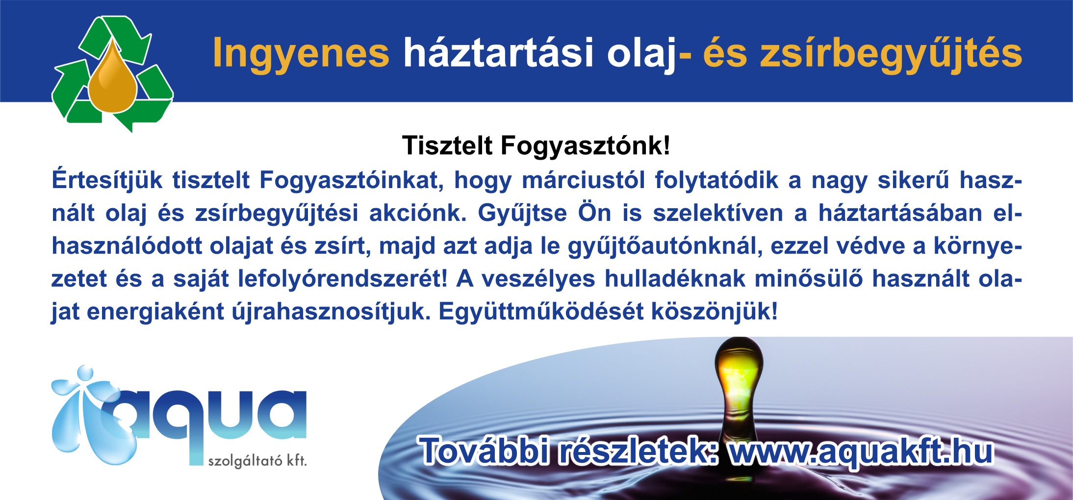 Októberben is folytatódik az AQUA Szolgáltató Kft. használt háztarási olaj- és zsírbegyűjtési akciója!