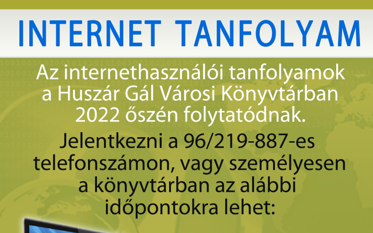 Idén ősszel folytatódnak a már hosszú évek óta nagy érdeklődésnek örvendő internethasználói tanfolyamok a könyvtárban.