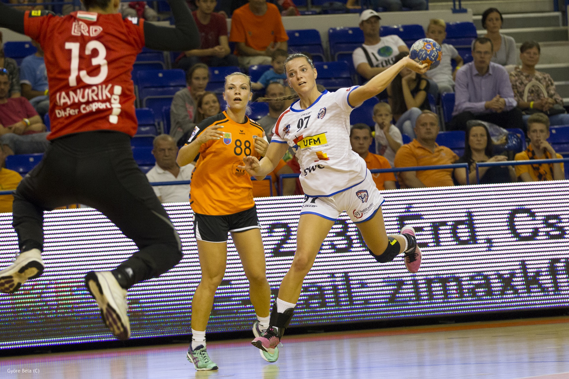 Jól kezdte a csapat az összecsapást és sikerült gyors egymásutánban szórni a gólokat, így hamar 4:1-es előnyt harcolt ki magának az együttes. Előnyüket nagyjából a 15. percig derekasan tartották, de a fokozódó érdi offenzíva közepette egy kétszer két perces kiállítás végül túl nagy pofonnak bizonyult a csapat számára, és az érdi különítmény átvehette a vezetést. A félidő hátralévő részében Zeljana Stojak tovább remekelt a kapuban és még a védelem is jól működött, de a gólgyártásban kénytelen-kelletlen visszaesett a csapat teljesítménye. Az éppen gólfelelős Sandra Filipovic és Kiss Nikoletta párosból az utóbbi kényszerült már kétszer megítélt két perces kiállítása miatt, valamivel több időt a padon tölteni, valószínűleg a végleges kiállítást elkerülendő. A félidőt viszont így is kiváló eredménnyel hozta az óvári gárda, hiszen a pihenő során az ellenfelük összesen egy gólos előnyt tudhatott csak magáénak. (11:10)