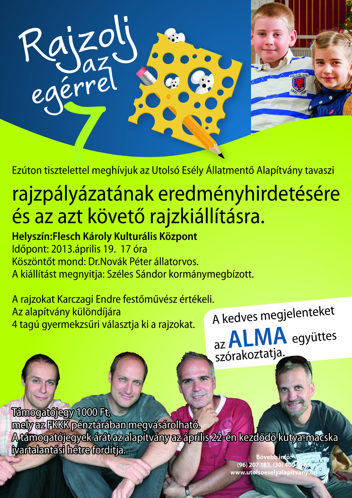 Utolsó Esély Állatmentő Alapítvány tavaszi rajzpályázatának eredményhirdetése és rajzkiállítás megnyitó.