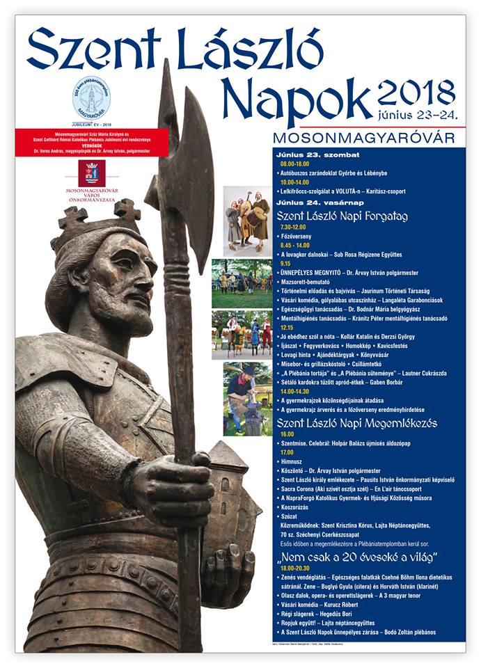 Megemlékezés és forgatag, színes műsorok, előadások Mosonmagyaróváron, Szent László tiszteletére.