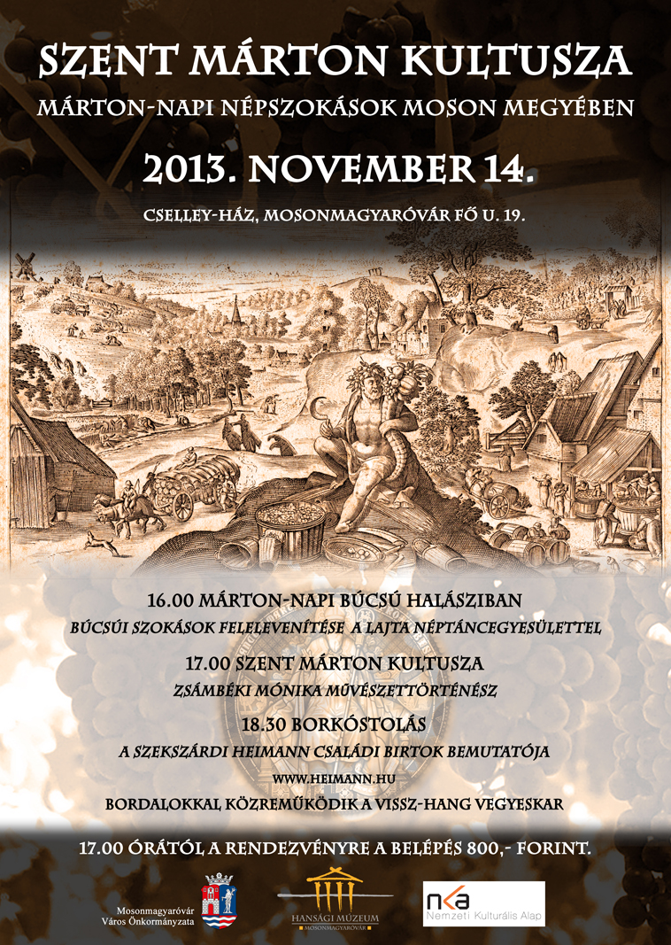 Márton napjára általában megforr az újbor. „A bornak Szent Márton a bírája” – tartja a mondás. Márton poharával köszöntjük azokat, akik az előadás után részt vesznek a Heimann Családi Birtok borkóstolóján.