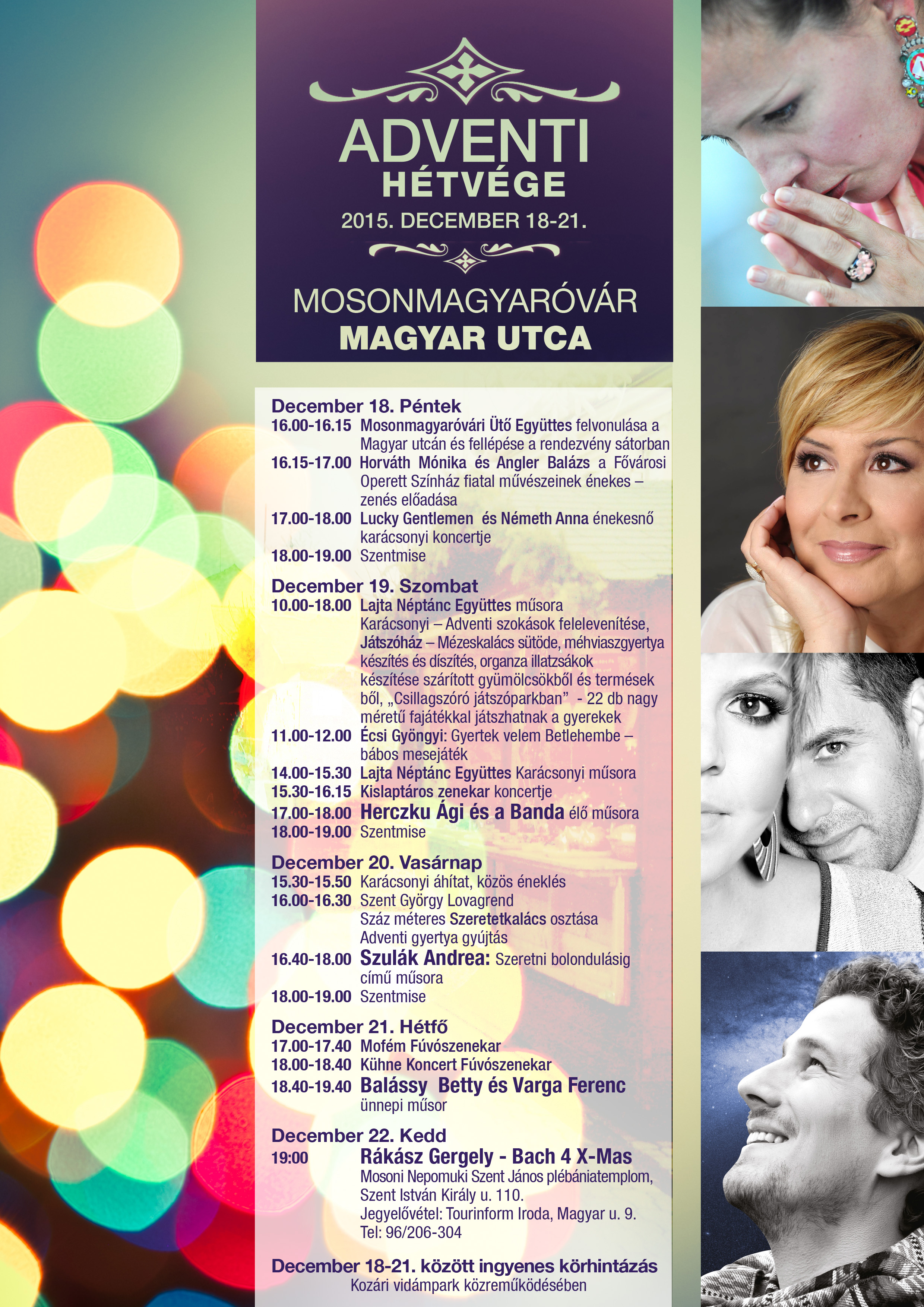 Napjainkban a karácsonyi előkészületek kicsit megváltoztak, rohanunk, nyüzsgünk, kapkodunk, persze a várakozás izgalmának meg kell lennie, de ez legyen varázslatos, csaljon mosolyt az arcunkra. Ebben próbál segítséget nyújtani Mosonmagyaróvár Város Önkormányzata és a Flesch Károly Nonprofit Kft.. Egy apró „szigetet” varázsolunk a Magyar utcára, ahol feledhetik a gondokat, ahol ajándékokat vásárolhatnak és felmelegíthetik magukat egy pohár forralt borral vagy zamatos teával, ahol összefuthatnak a barátokkal.