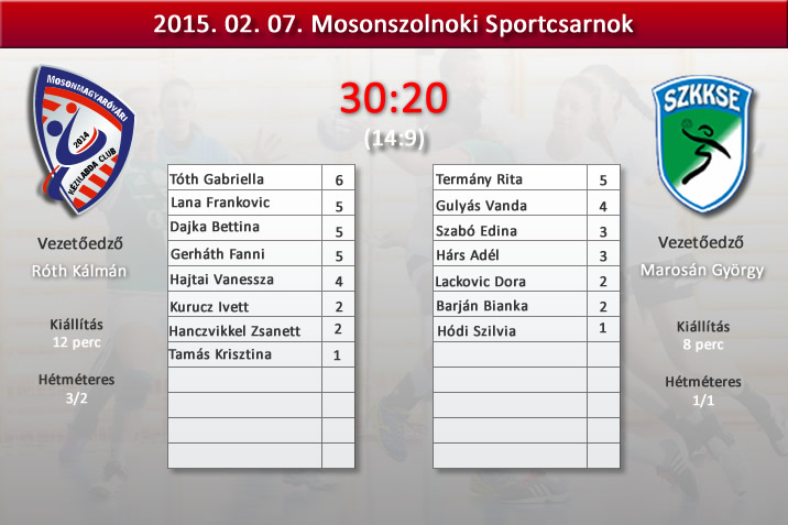 Alapszakasz 18. forduló I Mosonszolnoki Sportcsarnok I MKC SE – Szeged KKSE 30:20 (14:9)