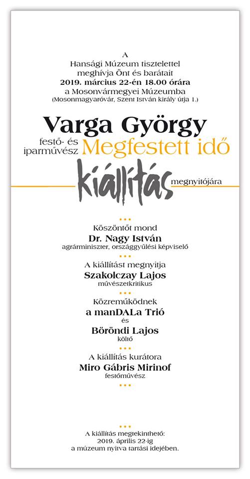 Varga György festő- és iparművész "Megfestett idő" című kiállításának megnyitójára.