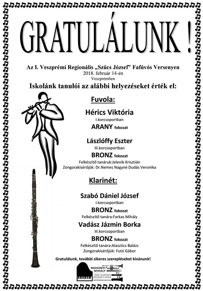 2018. február 14-én Veszprémben és Szombathelyen is zenei megmérettetés várta a tanulókat, ahol a Mosonyi Mihály Zenei Alapfokú Művészeti Iskola növendékei rendre helyt is álltak.